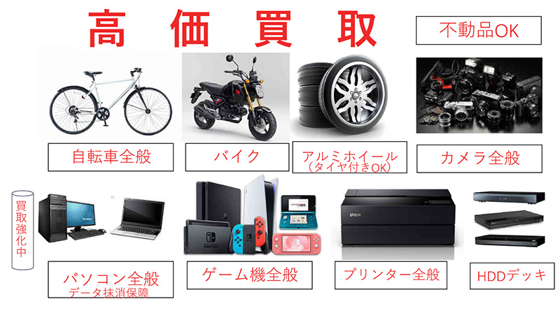 家電からブランド品、工具や日用品まで幅広く買取。